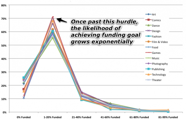 Tautological, but true. One of the most powerful data points I have seen shows that if a project reaches a tipping point of about 25% funding, its chances of being funded double. So many projects fail without ever being given significant attention or funding – getting your project to this point means you could have what it takes to go all the way.