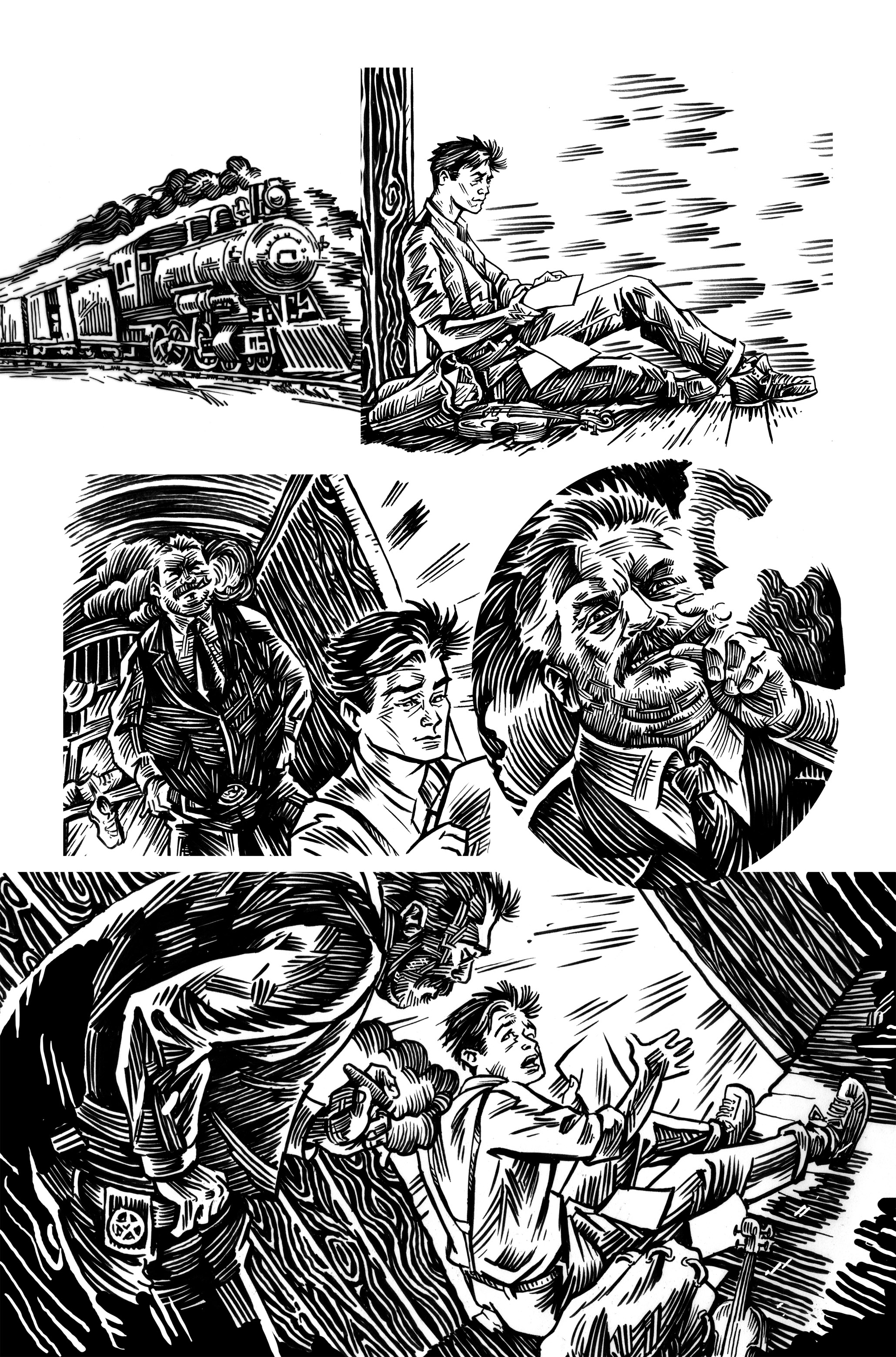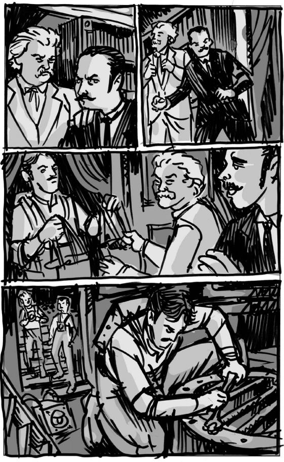 Okay, so I might feel a little bad that I implied we had some more finished art to show you, but just a little. We don’t have any finished pages, but we do have the next best thing. This morning, our incomparable artist, Robert, sent Chris and I some rough page layouts for the 5 pages we are doing to help as we beg for money search for fans and funding on Kickstarter. I was expecting some blocking along with some shades and shapes to make sure we are on the same page, but he exceeded those meager expectations. Take a look: