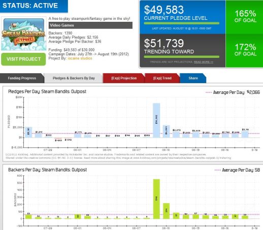 Both are successful projects, and one would have been successful, even without the one time bump that publicity provided, but in both cases you can see how the brush with stardom changed the projects trajectory for the better. In this first case, Megaopolis was the featured project of the day. The results speak for themselves. As you can see, this project was costing to success from almost the very beginning, but the spike is absolutely unmistakable. You could almost expect this level of performance from two veterans of the industry, but I doubt even they were expecting the burst of nitro Kickstarter gave their campaign. If you take a look at more charts from Kicktraq.com you will see that the second spike was actually more powerful than the first one. So how do we follow-up such an interesting example of how publicity can shape the trend of a project? With an even more startling one. Where as the project in my first example could have easily made it without the boost, the second one, based on the observable trend, would have languished in obscurity without the boost, see for yourself: So do we once again have Kickstarter to thank for this act of benevolence? Did they put another project on the front page with their Midas touch? No, actually. It took a little digging to find this well-timed article on Kotaku. In my opinion, it single handedly connected a project with its intended audience and allowed it the opportunity to be successful. Just look at that spike in backers! In a single day, they tripled their previous fan base. It’s incredible, really. One could say that this is the ultimate case of ‘right place, right time’, but I am sure there was a lot of effort put in to finding just the right blogger to write a story. Hard work and persistence tend to pay off in my experience; it’s like the silver lining of the old phrase, “he who lives by the sword, dies by the sword,” though I don’t think swords need much in the way of silver linings. They already have that metallic edge thing covered.