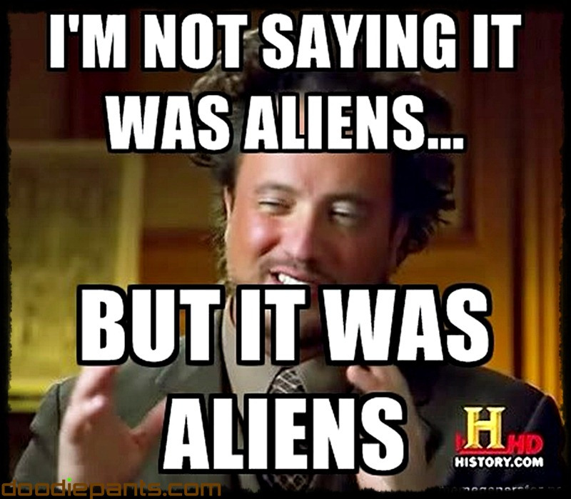 Anyway, I think I’ve managed to convey why I find Ancient Aliens a guilty pleasure.  And you know what, putting it out there for you guys has made me feel a bit better about my infatuation with this schlock.  So why not take the opportunity to share your guilty pleasure in the comments?  Maybe it won’t feel so guilty next time you indulge.