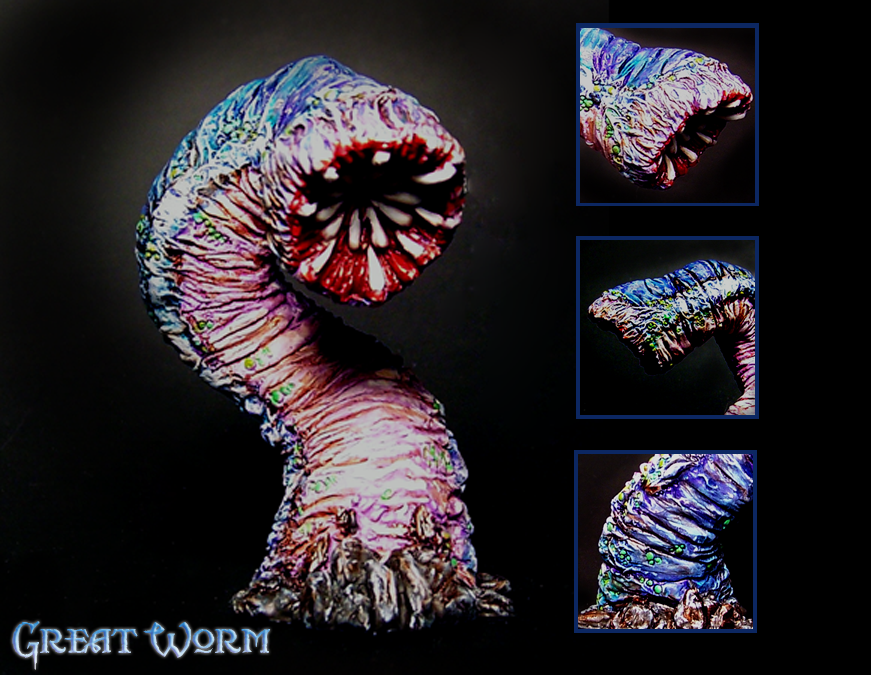 Clint also burned the candle at both ends to bring us this week’s mini, a duplicate of one I showed in a previous post from Reaper’s Bones line … the Great Worm!