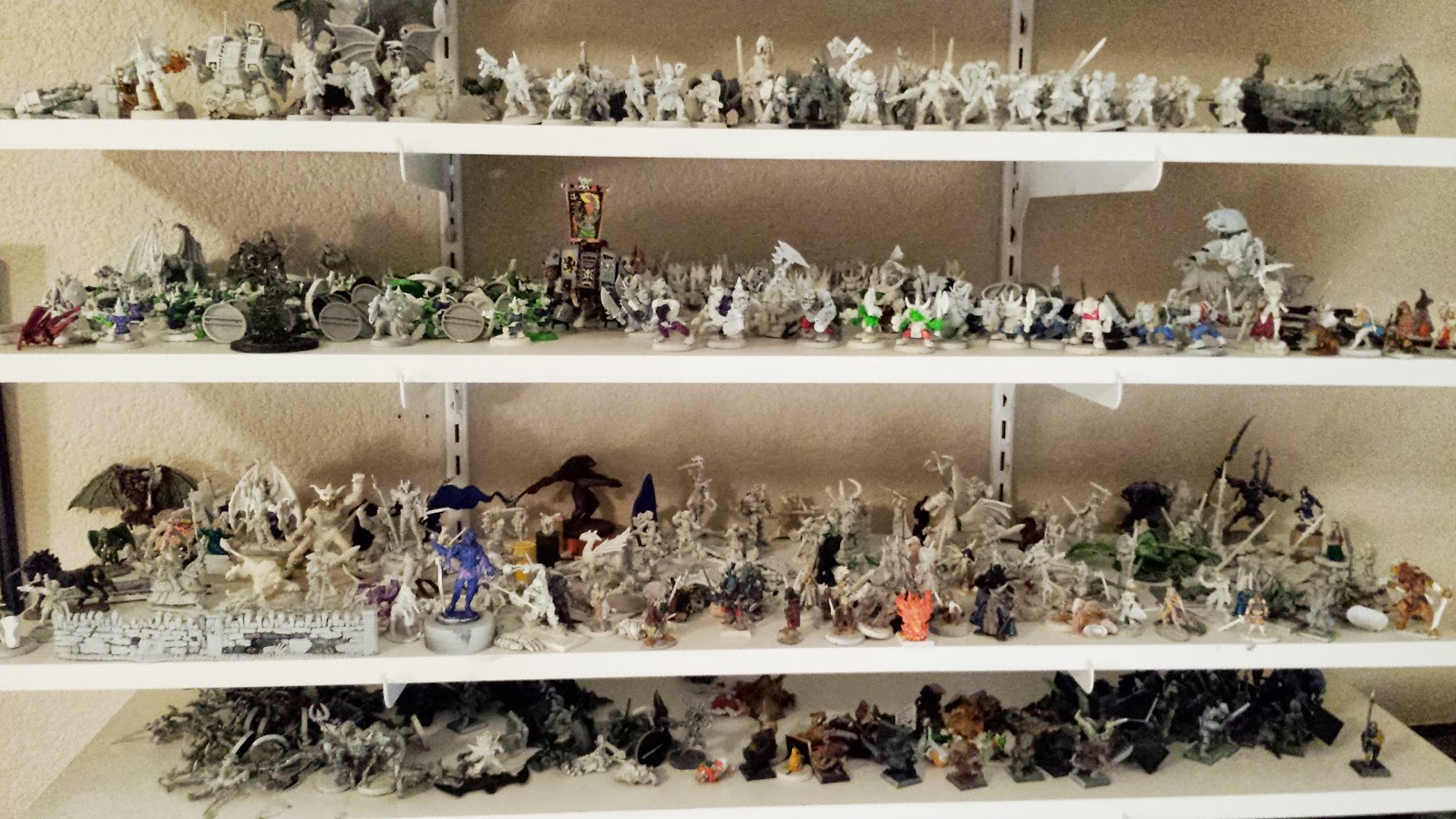 I hope folks found these last few weeks helpful. Usually, my advice on painting is just “slap paint on it and move it around” and I’m not sure I really improved on that all. I’ve been painting for a few decades now, and I still think I suck, so when David asked me to write up a review and shed some light on how I paint, I was a bit flabbergasted and a bit flattered. Still, it’s been fun and look forward to another half year of “Miniature Mondays”! Lord knows, I’ve got plenty to paint… here’s a look at my Shelf of Shame. I’ve got enough to last me a few years at one a week!