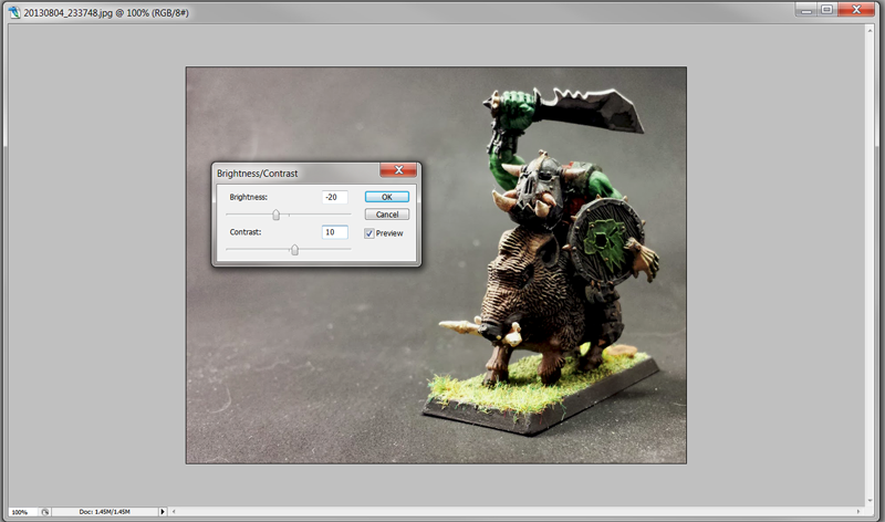 Can you believe that background is the black posterboard? That’s the wonder of the lightbox for ya. So this next step is the only part where I truly alter the photo by bringing up the Brightness and Contrast sliders.