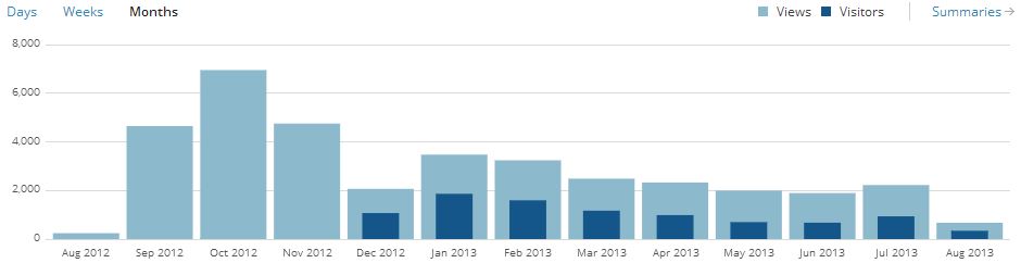 Looking at the above chart though, it doesn’t paint nearly as rosy picture as the above numbers suggest. In fact, a casual glance might suggest the blog is dying after a great start. I assure you this is not the case.