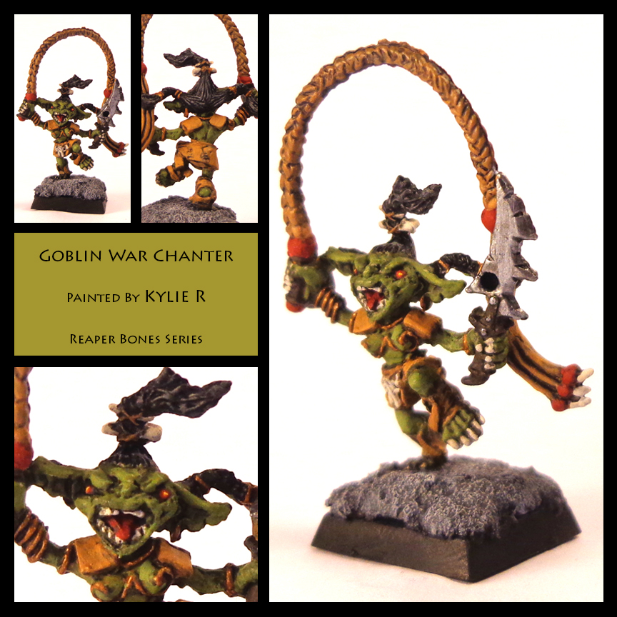 This model was a lot of fun to paint. My favorite pathfinder creation is actually their goblins, and getting to paint them was a real pleasure. The bones material made it difficult to parse out what decorations were connected to what, but ultimately it worked out just fine.