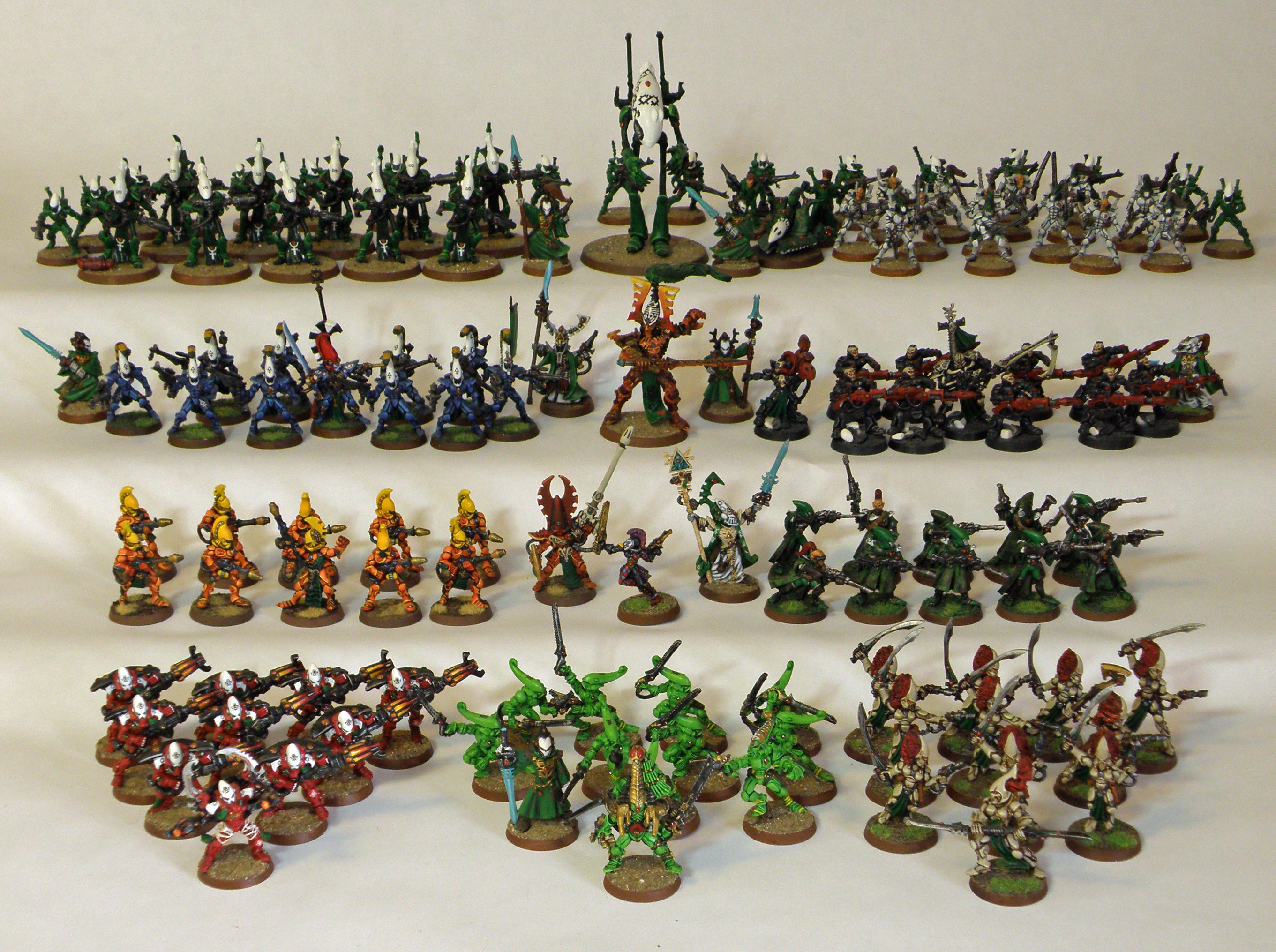 Jessica impresses as always. Pictured above is her husbands Eldar army, and it looks smashing. Care to estimate how long this project took to finish?