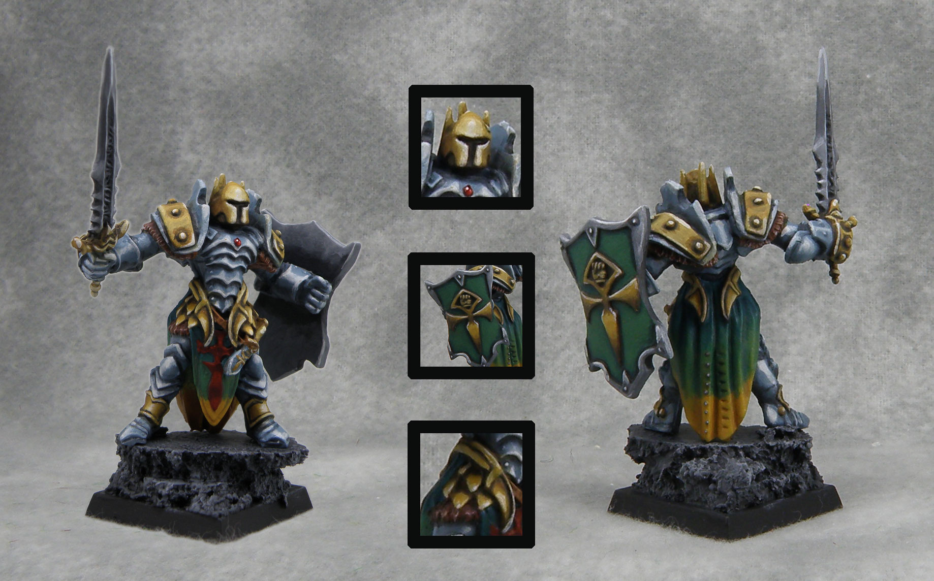 Dirk did the same glow effect I tried to do but better, and added some tarnished/verdigris armor to boot. Great job! Also, as always I love the subtle stories told in the bases: whoever made that summoning circle is going to wish they had done a better job.
