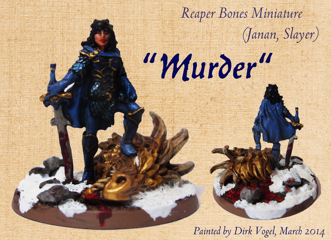 @Dave: I think painting the mini took also about 10-12 hours, like Dirk’s, since we painted sidy-by-side 😀 In hindsight I could have done more for her face, but one the other hand I wanted her to look more natural in comparison to Kitiara who I figured is wearing make-up. At least lipstick 😉