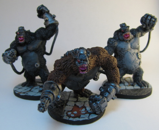 Chris joins us for the first time showing off a trio of cyber apes. They all look pretty pissed off to me, but their mouths catch my eye the most. Great color gradation there. (For more information on his process, go to http://x-actoscience.blogspot.com/2014/06/twin-birthdays-of-doom-2014-where-mi-go.html?m=1)
