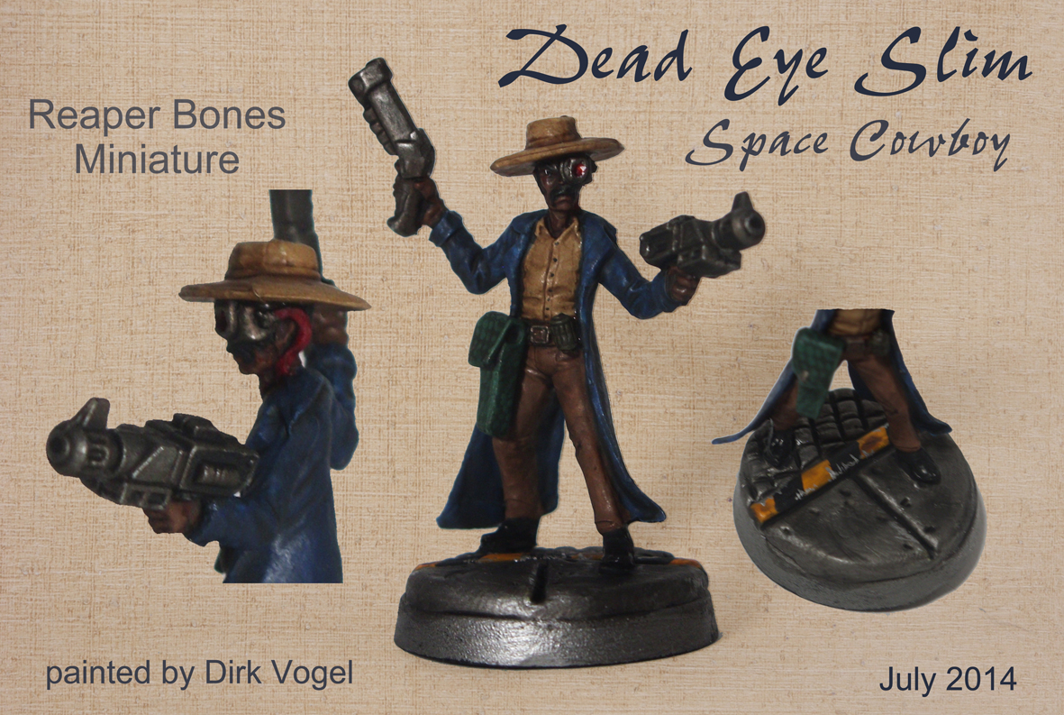 Dirk choice is as different and contrasting as it could possibly be. He moved his gunslinger a couple thousand years into the future. Bravo sir! I love how the modifications are so smooth that it looks stock. This mini definitely has a man out of time, or maybe even Firefly vibe.