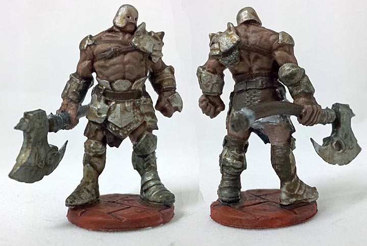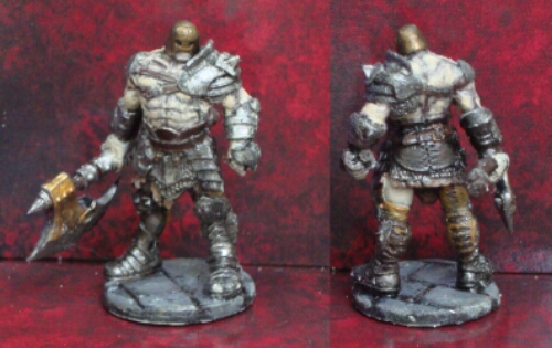 This miniature is scary even when it is unpainted. One of our regular painters did point out that it is ridiculous to wear that much armor when none of it is protecting your vital organs. While I agree, I would never make judgements about the fashion sense of man that carries an axe that size in one hand.
