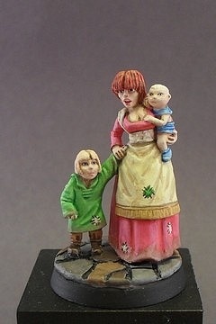 Dirk was building up a good color scheme, but ran out of time for detailing. Note – this is how good Dirk can make a mini look in two hours. I know – I hate him too. I love the linen on the mother though – it’s a hard color to pull off.