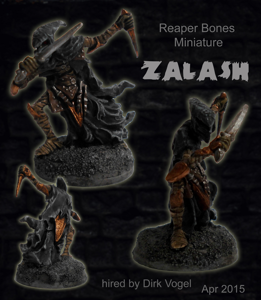 Arjen went for a monochrome effect, but I think this version of Zalash has some sort of magical item to cause this shadowed effect. No doubt he can walk past guards and through walls unseen this way.