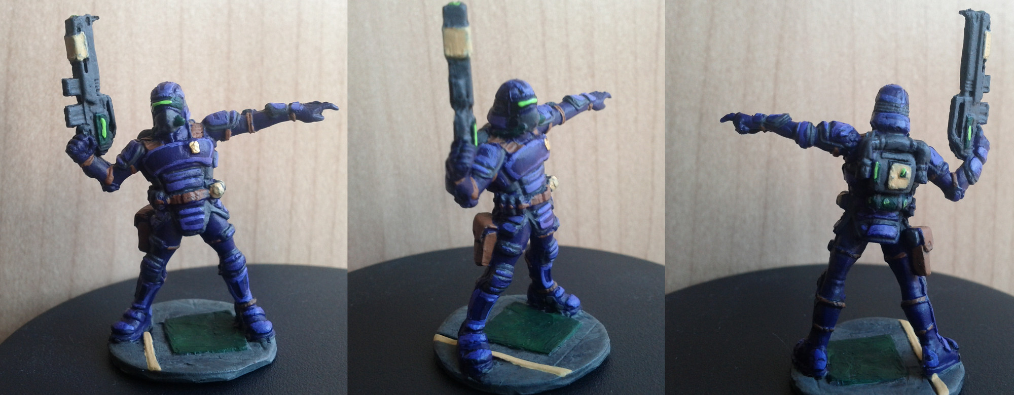 I really enjoyed working on this mini (I’ll use it for my Dark Heresy RP Character) although I found it a bit difficult to stay dark-ish (it is 40k, after all…) without losing all color. .