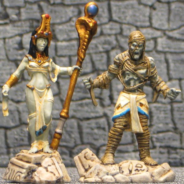 The miniatures of the mummy queen and king are nice, with crisp detail and classic poses, although I’d really love to see a female mummy that’s less sexy and more scary, or at least wrapped in bandages, like a… mummy or something. But overall I still like her.