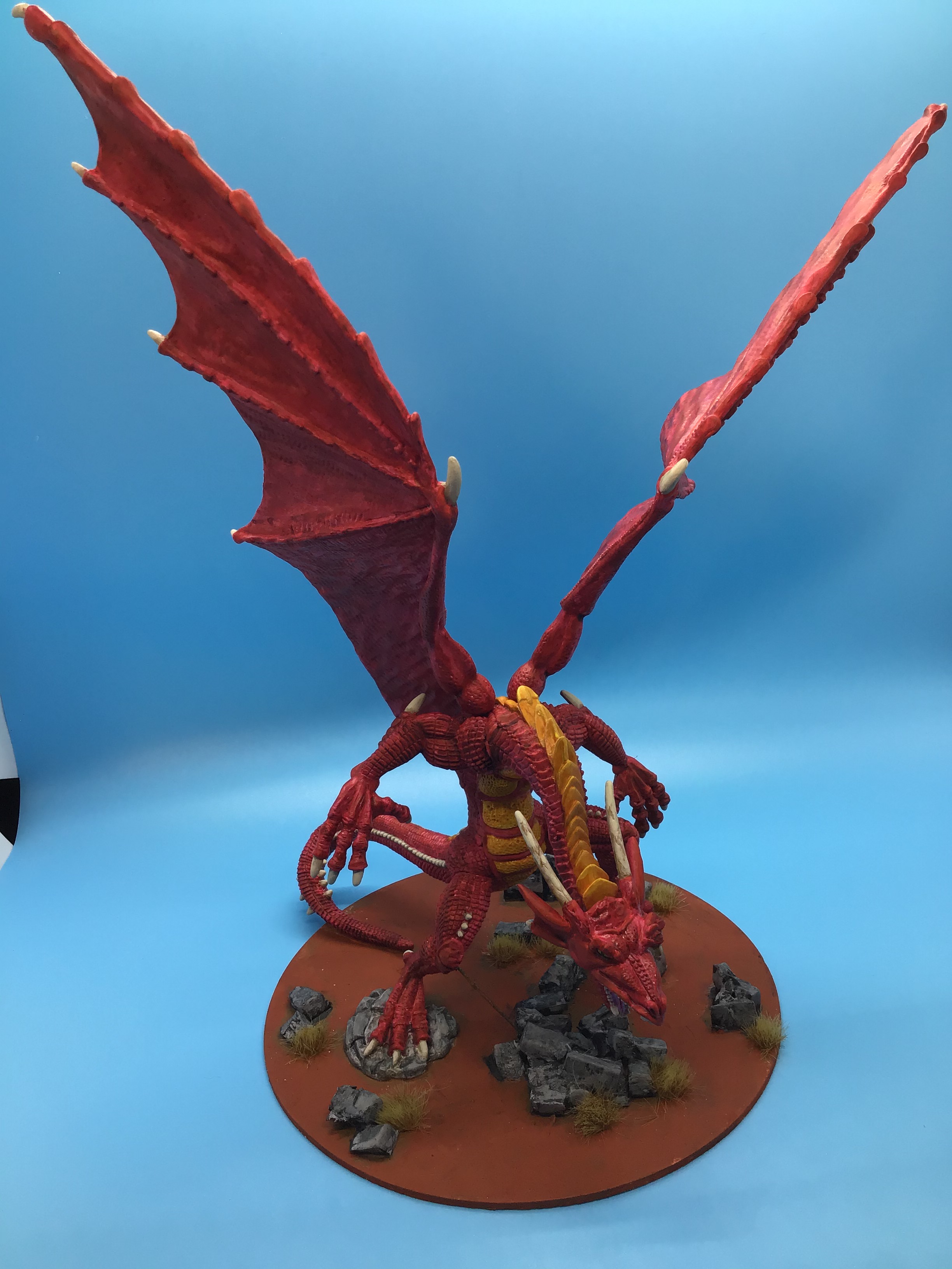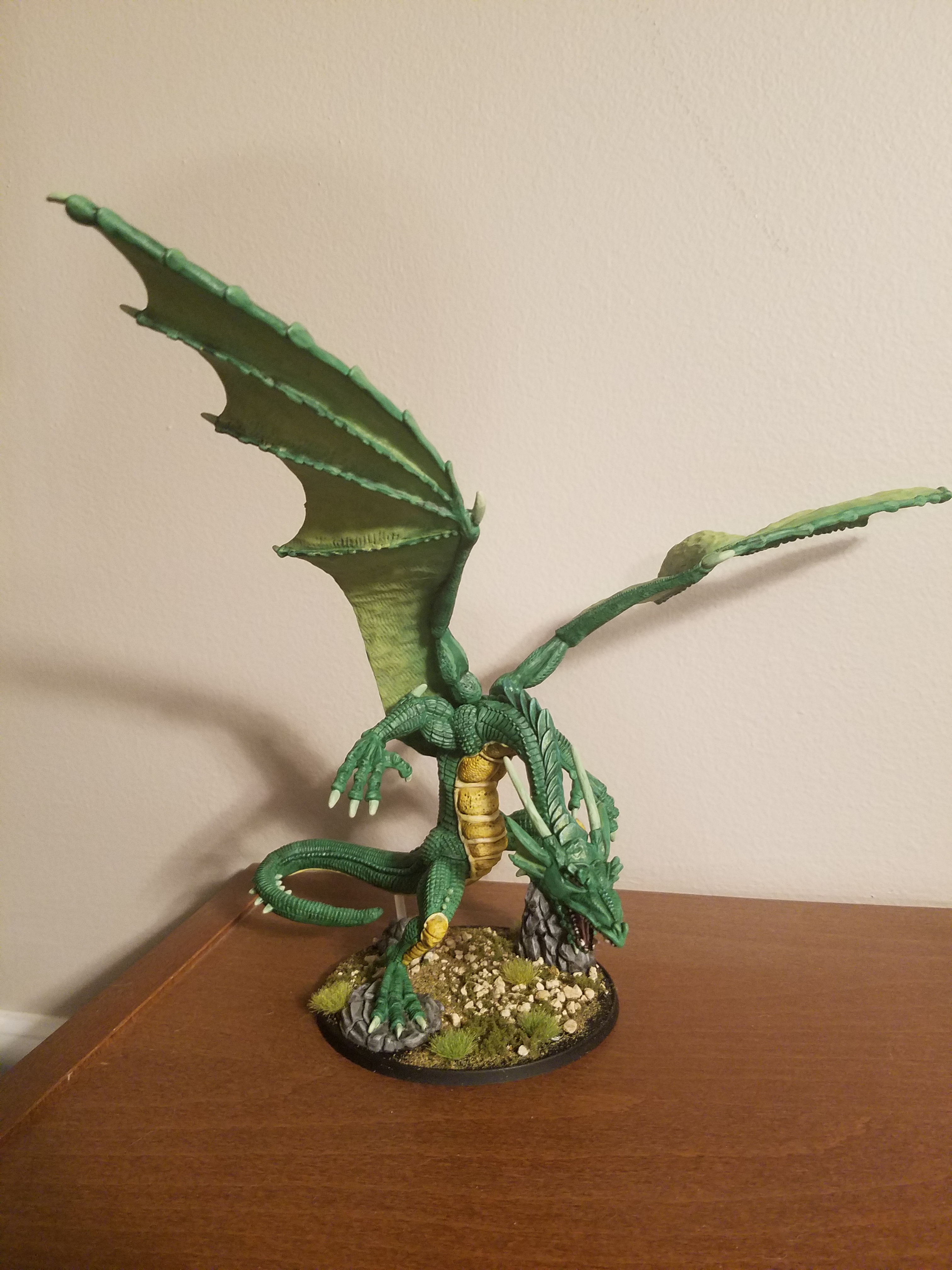 • Thanks! Your comments on the base are correct. Once I got the dragon and the big log/trunk on, there really wasn’t much room! I think the only real solution would have been to use a much larger base and create more of a diorama rather than a gaming piece. Live and learn!
