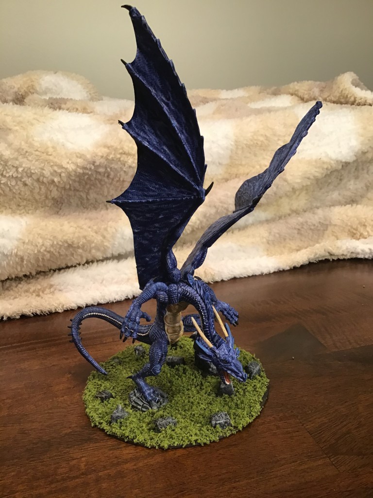 Timothy, it’s really nifty that you sent two in. How did the metal wings behave? I think I like the blue a bit better; it’s a darker blue than a lot of the modern blue dragon art, which to me captures the old-school spirit of this model. Also, I like how you didn’t paint them in the exact same way in terms of where the accent colors are.