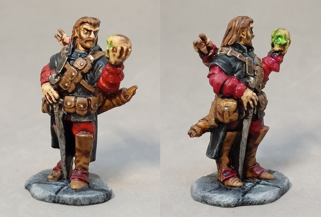He told us: “I have to admit feeling a bit bad about not really liking this mini. It’s a style problem, as I can’t decide whether he’s more 18th, 19th or even 20th Century. I think it’s just that I don’t have much connection to the Pathfinder aesthetic. On the other hand, the mini is well sculpted and cast with good detail on both the front and the back. I particularly like the separate head. I’m not sure how I chose the colors, but he has a vaguely maritime feel so that is the general direction I went. Perhaps like a Spanish or Italian explorer? In any case, I like the way he turned out, especially the facial expression.”