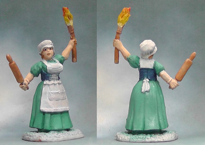 “Burn the… what are we hunting now, again?” What is Frankenstein’s Monster without the angry mob? And why should the men get all the fun? We already painted the male, fork and torch wielding rioter in an earlier article. Now the women have their go, but whom the menacing mob is after? Let’s see what our painters had in mind…