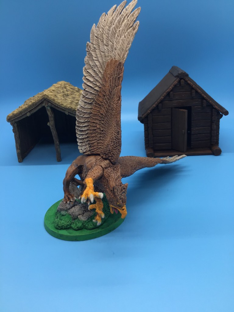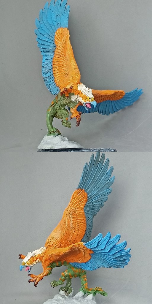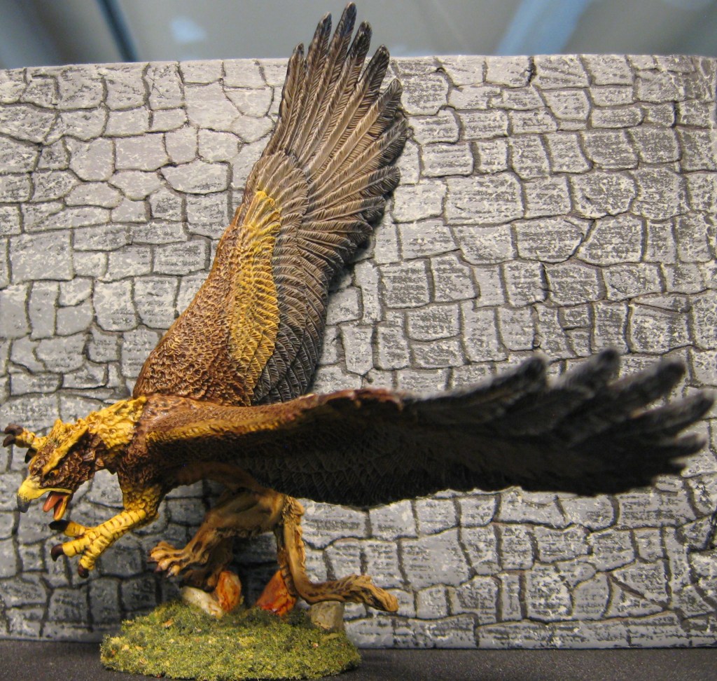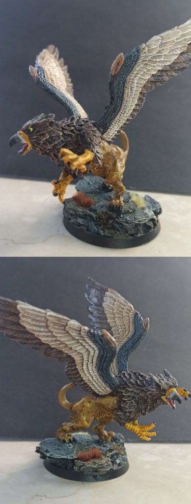 He wrote: ” My griffon started out being painted like a North American Golden Eagle but I may have strayed a bit. Overall, I’m pretty happy with the result and I’m glad to get another relatively large monster in the collection. I really don’t paint enough of them.”